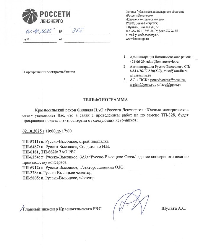ОТКЛЮЧЕНИЕ ЭЛЕКТРОСНАБЖЕНИЯ 02.10.2025
