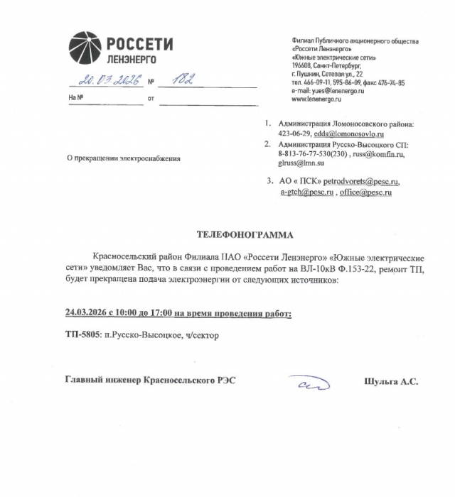 ОТКЛЮЧЕНИЕ ЭЛЕКТРОСНАБЖЕНИЯ 24.03.2026
